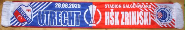 After 15 years, my favorite club F.C. Utrecht is back in the group phase of an European competition.In the play-offs they did beat Zrinjski Mostar with a 2-1 away victory and a 0-0 draw at home. No official match scarf was for sale but outside the stadium there was a boy selling a woven match scarf of the home match.Old logo, only the cityname..but with a good design.